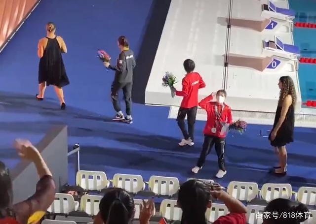 在頒獎儀式結(jié)束之后,全紅嬋和陳芋汐一起退場,有趣的是,全紅嬋橫著走過了觀眾席,像一只小螃蟹一樣“橫行無忌”,一邊走一邊向大家打招呼。
